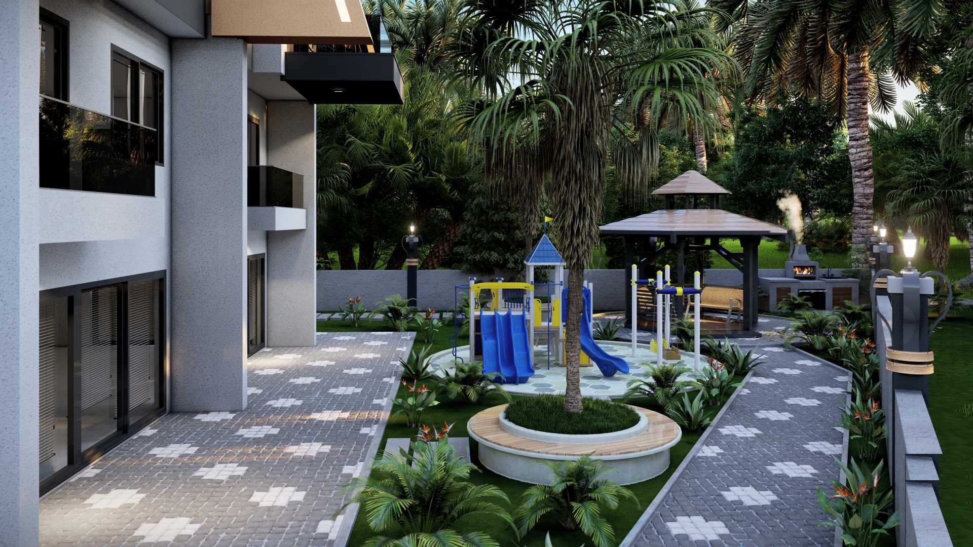 Vanjski zajednički prostor je lijep sa lijepo uređenim vrtovima i fantastičnim bazenom savršenim za opuštanje dok djeca brčkaju okolo. Objekti su dizajnirani da liče na one koje biste pronašli u hotelu sa pet zvjezdica. Zamislite dan na plaži, nakon čega slijedi opuštanje u raskošnom SPA centru, zatim sastanak s porodicom i prijateljima na roštilju u ljupkim vrtovima.