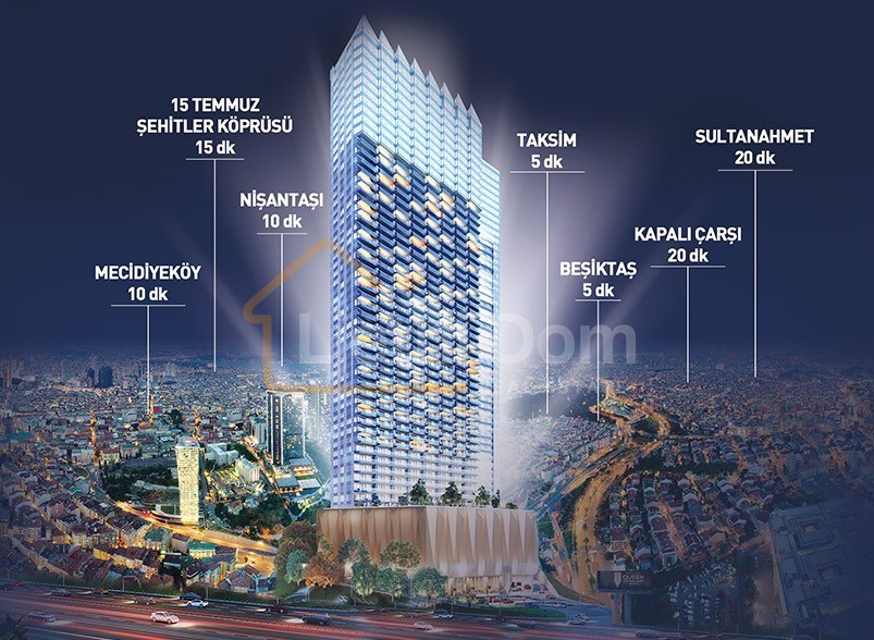 U srcu historijskog Šišlija, jednog od najživahnijih i najtraženijih kvartova Istanbula, nalazi se moderni stambeni blok koji je završen 2019. godine. Ovaj impresivni kompleks sa 50 spratova pruža širok spektar opcija za stanovanje, od garsonjera do stanova sa tri spavaće sobe, idealnih za sve, od pojedinaca i mladih profesionalaca, do porodica.