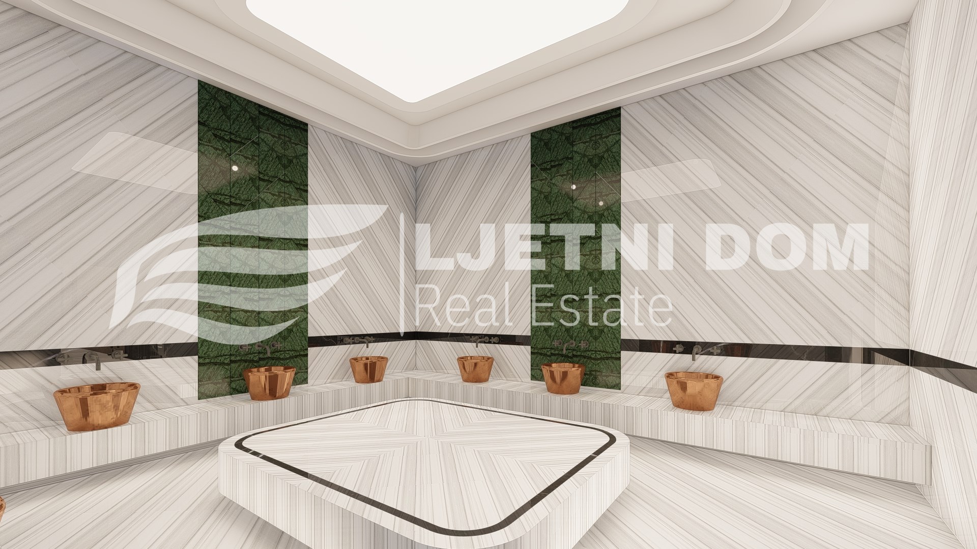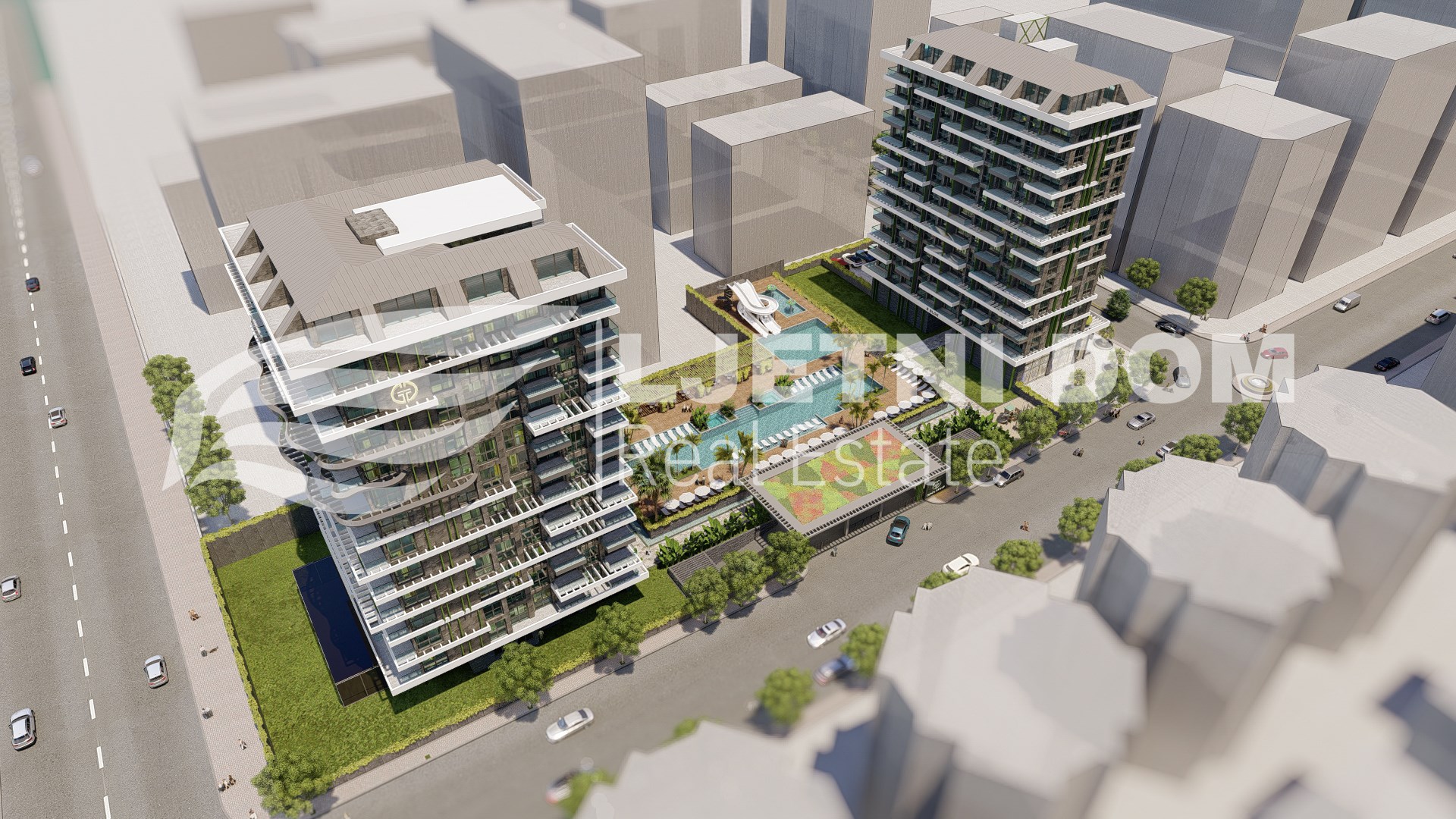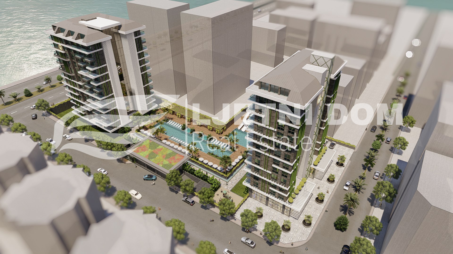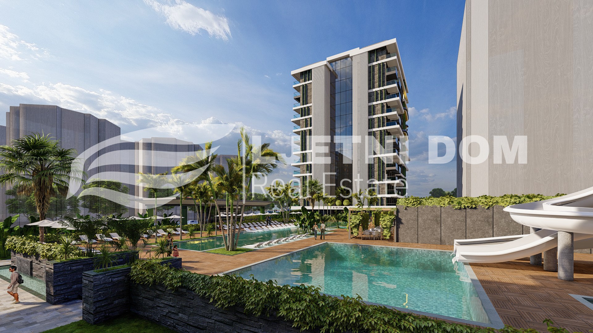 Ovi apartmani se nalaze na 6400m² parceli zemlje i sastoje se od dva bloka. Blokovi sadrže svoju deluxe shopping zonu, impresivan prostor za parkiranje za 102 automobila, bujnu baštu, podzemni prolaz do plaže, veliki vanjski bazen, dječiji bazen s vodenim parkom i toboganima, opuštajući spa centar, stolni tenis, kino, bilijar, simulacijsku sobu za golf, roštilj i 24-satnu sigurnosnu službu. Spa centar sadrži: unutarnji grijani bazen, hammam, parnu sobu, finsku saunu, sobu za opuštanje, sobu za masažu, fitness centar, sobu za jogu i pilates.