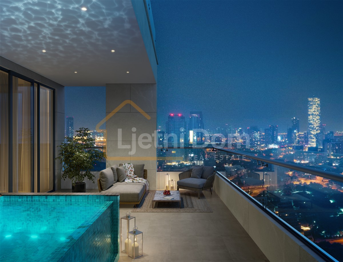 S ponosom vam predstavljamo projekat koji se ističe svojom impozantnom fasadom u bijeloj i svijetlo sivoj boji, uz 25-spratni neboder koji nudi stanove sa jednom i dvije spavaće sobe. Arhitektonski stil je inspirisan kišom i osjećajem svježine, a prozirni plavi elementi koji krase unutrašnjost doprinose osjećaju hladnoće i spokoja.